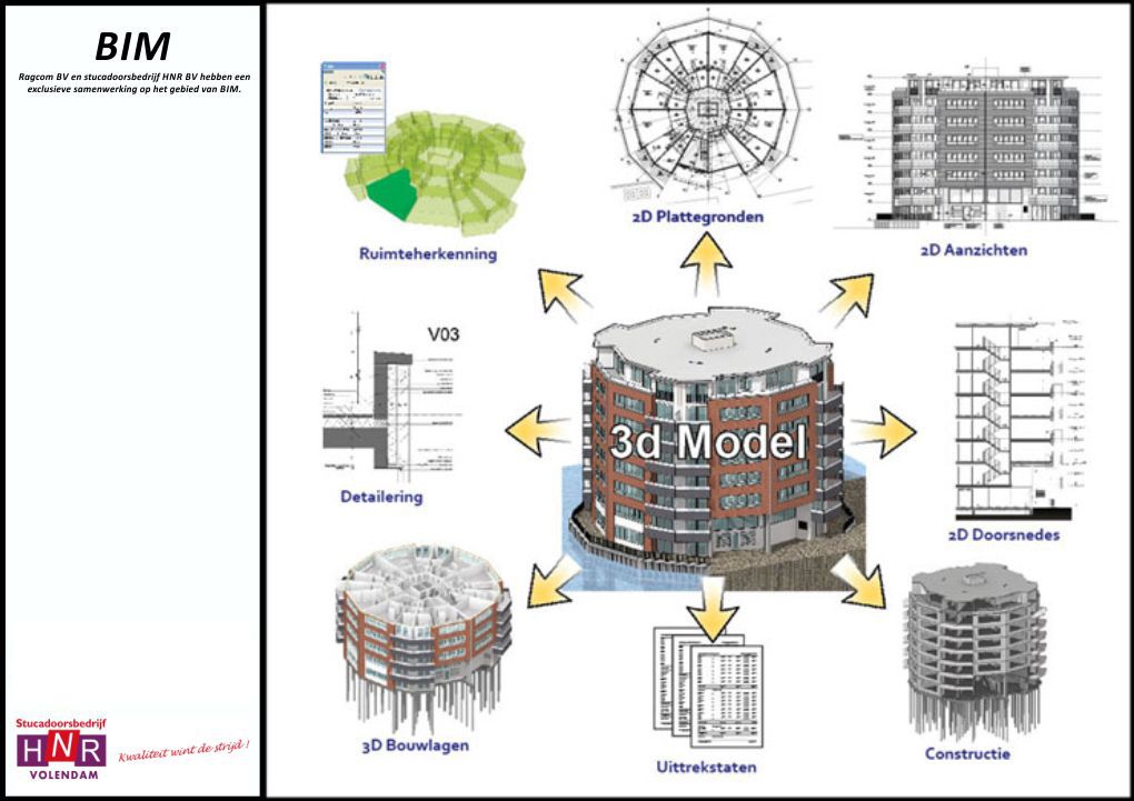 BIM is een dagelijks voorkomende term binnen HNR. Vanuit haar totaalafbouwconcept is HNR in staat volledige support te verlenen op het gebied van BIM. HNR kan de volgende diensten op het gebied van BIM verzorgen:
