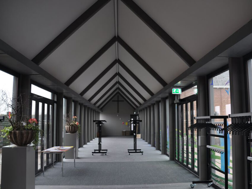 Op het begane grondniveau waren diverse schadeplekken met een lambrisering aan het oog onttrokken. Wij hebben meermaals ervaren dat bij extra vocht- en zoutbelasting in de muren het aanbrengen van een zoutbufferend pleistersysteem niet duurzaam is. Dat was dan ook de reden om in het genoemde project te zoeken naar alternatieven in overleg met het kerkbestuur en de aannemer.